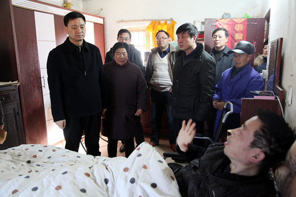 在居民新區退休職工賈則元家,姜建友來到賈則元的床前,將集團公司黨委的溫暖送到了他的心坎里,賈則元因病臥床不能說話,當看到集團公司和農場領導來到家中看望他時,激動的熱淚盈眶,在旁的家人再三感謝集團公司領導對他們的關心。姜建友在了解了賈則元的病情后,叮囑他的家人一定要照顧好老人的生活起居,當得知老人得病一年多臥床不起都是子女在照顧時,姜建友欣慰的說,有這樣的子女也是老人的福氣,希望他們繼續照顧好老人,讓老人老有所依,病有所托。在困難職工李兵家,姜建友來到床前,握著李兵的手詢問了他目前的病情和治療情況,當得知他是糖尿病綜合并發癥時,叮囑他要積極做好治療,特別是要去大醫院做檢查,控制好血糖,要樹立戰勝疾病的信心。所到之處,感謝聲不絕于耳,在這寒冷的冬日,困難職工的家中被一股股暖流包圍。(錢厚紅)