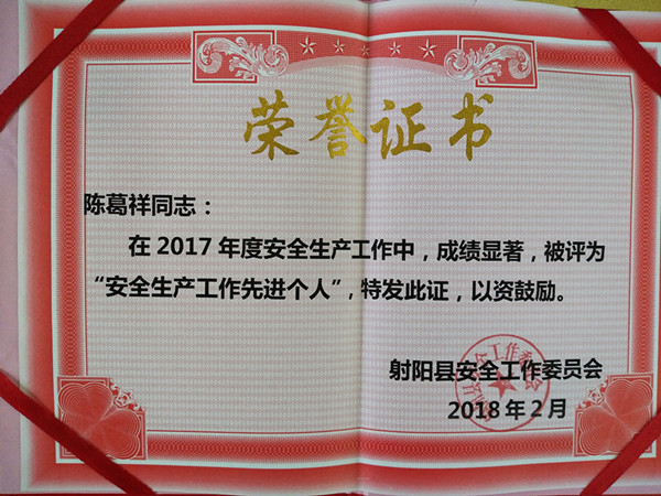 近日,新洋農(nóng)場(chǎng)傳來(lái)喜訊,在射陽(yáng)縣2017年度安全生產(chǎn)工作目標(biāo)任務(wù)完成情況考核中,新洋農(nóng)場(chǎng)榮獲射陽(yáng)縣2017年安全生產(chǎn)先進(jìn)企業(yè)榮譽(yù)稱號(hào),江蘇省國(guó)營(yíng)新洋農(nóng)場(chǎng)供電管理服務(wù)中心榮獲安全生產(chǎn)先進(jìn)企業(yè)稱號(hào),陳葛祥獲安全生產(chǎn)工作先進(jìn)個(gè)人。