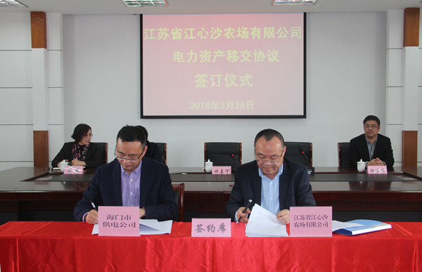 為深入貫徹落實集團公司關于深化改革發(fā)展工作的相關精神要求,加快推進農(nóng)場辦社會職能改革工作。3月29日,江心沙農(nóng)場與海門市供電公司資產(chǎn)移交簽約儀式在農(nóng)場舉行。農(nóng)場黨委書記、場長許嘉寧,黨委副書記嚴忠,副場長楊慧,海門市供電公司總經(jīng)理李秋實、副總經(jīng)理陸建鋒,以及雙方相關單位、部門負責人出席簽約儀式。