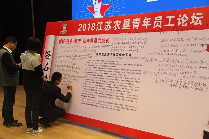 此次論壇活動取得了建設性成果,與會全體青年員工代表認真審議并通過了《江蘇農墾青年員工成長宣言》,姚準明、佟曉廷以及與會全體青年員工在成長宣言簽名墻、簽名簿上鄭重的簽下了自己的名字。論壇的成功舉辦,充分體現了集團公司黨委對青年員工的關愛和培養,必將使軍墾文化、農墾精神薪火傳承;必將增強青年員工對農墾的認同感、歸屬感、榮譽感;必將更加堅定青年員工立志獻身農墾、扎根農墾、建設農墾的信心;必將促使青年員工在新時代更加愛崗敬業、成長成才。作為新時代的江蘇農墾青年,紛紛表示一定以“勇擔歷史使命,勇立時代潮頭”為己任,不忘初心,牢記使命,砥礪前行,久久為功,為加快建設一流現代農業企業集團和實現“百年蘇墾”的農墾夢貢獻自己的青春、智慧和力量,與時代同奮進,與農墾共輝煌!