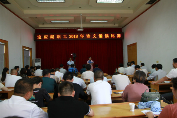 7月19日上午,寶應(yīng)湖農(nóng)場有限公司機(jī)關(guān)西會議室,不時傳出陣陣掌聲,寶應(yīng)湖職工2018年詩文誦讀比賽正在舉行。