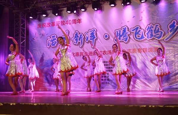 為慶祝改革開放40周年,積極推動駐射農墾企業文化納入射陽文化發展大地圖工作,9月5日晚7點半,新洋農場有限公司與射陽縣文廣局聯合舉辦“活力新洋 騰飛鶴鄉”聯誼演出。新洋領導陳守軍、潘元海、戴學林、仰海洲、王煜明、賀春峰,縣文廣局局長賀琰,副局長周克明,以及新洋職工居民近800人觀看演出。