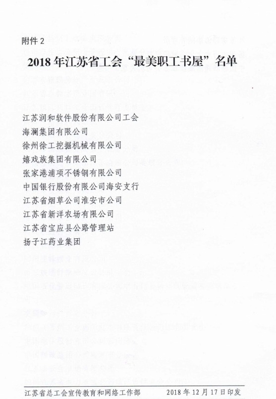 12月17日,從江蘇省總工會獲悉,新洋農場有限公司被授予江蘇省“最美職工書屋”榮譽稱號,成為江蘇農墾、鹽城市唯一一家獲此殊榮的單位,此次江蘇省僅有10家單位獲獎。