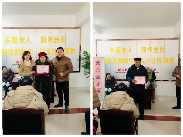 老人夏正才說:“你們把服務站打扮的很隆重,這是對老年人的重視嘛,參加活動不但有獎品,還有跨年蛋糕和我們老人分享,真的是很開心啊!”