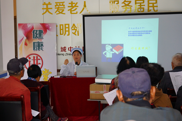 腦卒中又稱急性腦血管病,俗稱“中風”,已成為危害中老年人身體健康和生命的主要疾病,給個人、家庭和社會帶來了沉重的負擔。在當天的講座中,農場醫院護理部主任楊軍結合PPT課件,用通俗易懂的語言,向老人們介紹了腦卒中的癥狀、危害以及預防措施等方面知識,提醒廣大老年朋友應定期進行腦卒中篩查及其他相關檢查,以便做到早發現、早診斷、早治療。