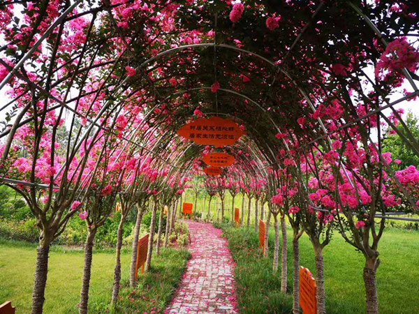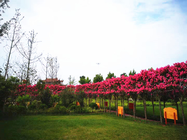 紫薇花又名“百日紅”,現(xiàn)在正值茂盛季節(jié),花期很長,可由6月開至9月,撲來的清新空氣,讓來園的居民心情舒暢。長廊內(nèi),還有古色古香的木質(zhì)文化牌,行走其中,賞花賞景賞詩詞楹聯(lián),還能得到精神的滿足,成為金龍灣生態(tài)文化園內(nèi)的又一道靚麗風(fēng)景線。