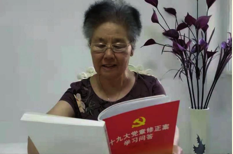 “感恩新時代,養(yǎng)老金已連續(xù)15年遞增,讓我們生活無憂無慮。現(xiàn)在就是要鍛煉好身體,健康地活著,看到祖國越來越富強,人民越來越幸福!”吳文英笑著說。圖為吳文英在學習。
