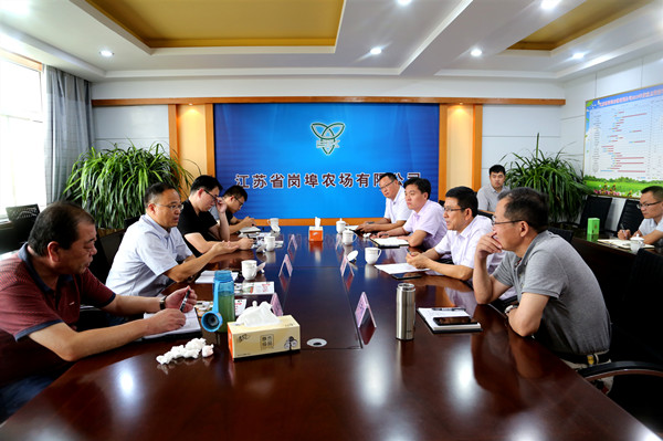 李鋒一行首先現(xiàn)場參觀了崗埠在田水稻和高效農(nóng)業(yè)產(chǎn)業(yè)園,聽取了崗埠現(xiàn)代農(nóng)業(yè)產(chǎn)業(yè)技術(shù)體系、現(xiàn)代農(nóng)業(yè)產(chǎn)業(yè)園規(guī)劃運營等方面情況介紹,詳細了解崗埠發(fā)展的總體規(guī)劃、以及項目建設進展等情況。經(jīng)過60年不斷創(chuàng)新,崗埠已經(jīng)建成一二三產(chǎn)融合發(fā)展的現(xiàn)代化農(nóng)場,在科研創(chuàng)新、示范推廣、高效農(nóng)業(yè)、規(guī)模農(nóng)業(yè)、休閑觀光等發(fā)展上邁出了新的步伐,糧食單產(chǎn)逐年上升,如今,小麥單產(chǎn)突破500公斤,產(chǎn)量比建場初期增長了10倍多,水稻單產(chǎn)突破600公斤,糧食總產(chǎn)超過70000萬千克,成為江蘇農(nóng)墾重要的糧食和種子生產(chǎn)基地。