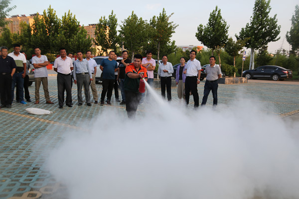 會后,參會人員還現場進行了消防應急演練,并學習了如何使用消防器材。