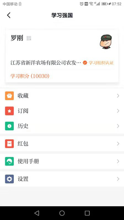 “每天早上起來第一件事,就是打開學習強國,這已經成為了一種習慣,融入了日常生活!”羅剛介紹說,“在學習強國上,學到了各種各樣的知識,更了解了各行各業的信息動態,特別長見識!”羅剛是新洋農業生產一線的工作人員,91年出生的他,研究生畢業后便來到了新洋工作。自學習強國推行以來,一天不落地學習使他一直處于新洋積分排行榜的榜首。據了解,羅剛也是射陽縣最高積分的保持者。
