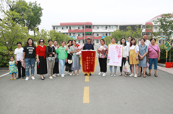 今年9月10日教師節(jié),崗埠中心小學(xué)二(6)班家長(zhǎng)代表懷揣著萬(wàn)分感激之情自發(fā)來(lái)到學(xué)校,真誠(chéng)地把一面印有“關(guān)心下一代,汗水澆未來(lái)”字樣的錦旗、鮮花送給二位任課教師。
