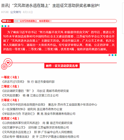 三是改進文風。公司一方面嚴格審核發文規格、發文程序和發文報送范圍,認真執行公文處理有關規定,從嚴審批,規范簽發,改進文風,轉變作風。另一方面,堅持問題導向,開展“公文找茬”活動,通過對身邊公文找差錯形式加強印象,從而提高學習成效。近日,農場職工撰寫的作品《咬文嚼字學公文》在江蘇省寫作協會公文專委會舉辦的“文風改進永遠在路上”主題征文活動中榮獲優秀獎。