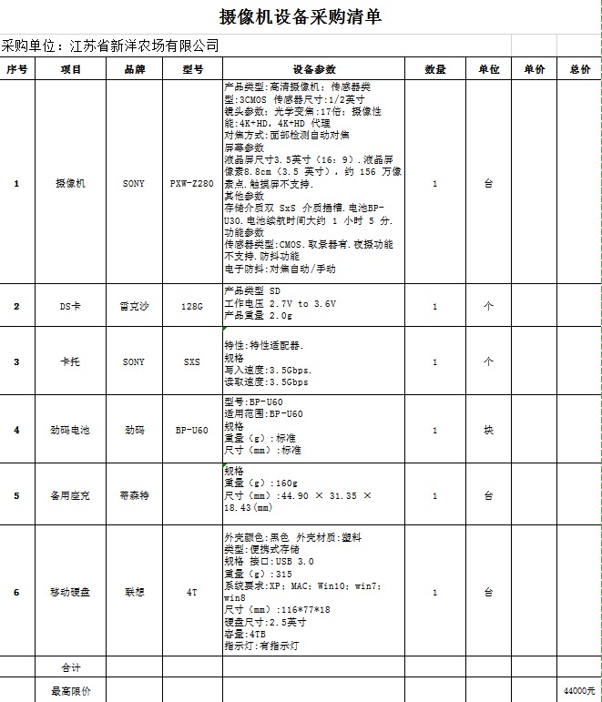 江蘇省新洋農場有限公司攝像機設備采購招標公示公告