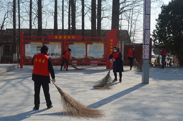 在黨群文化廣場,志愿者們對廣場上的落葉、樹枝等雜物進行打掃清理,為農(nóng)場公司職工居們提供干凈、整潔的休閑之處。疫情期間,志愿者們挨家挨戶走訪宣傳,發(fā)放疫情防控宣傳單,大力宣傳疫情防控知識,提醒廣大職工居民疫情期間不出門不串門。