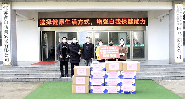 這已是周憲超和他的皇崗建設(shè)集團(tuán)公司第三次為白馬湖戰(zhàn)“疫”捐贈(zèng)防護(hù)物資,主要包括1萬(wàn)只醫(yī)用口罩和10箱二氧化氯泡騰片,非常適應(yīng)當(dāng)前統(tǒng)籌疫情防控和經(jīng)濟(jì)社會(huì)發(fā)展,決勝疫情防控阻擊戰(zhàn)、有序推進(jìn)復(fù)工復(fù)產(chǎn)的需要。對(duì)其始終情系家鄉(xiāng)、熱心公益、支持戰(zhàn)“疫”的善舉,副總經(jīng)理王林代表農(nóng)場(chǎng)公司向他表示了由衷的感謝。