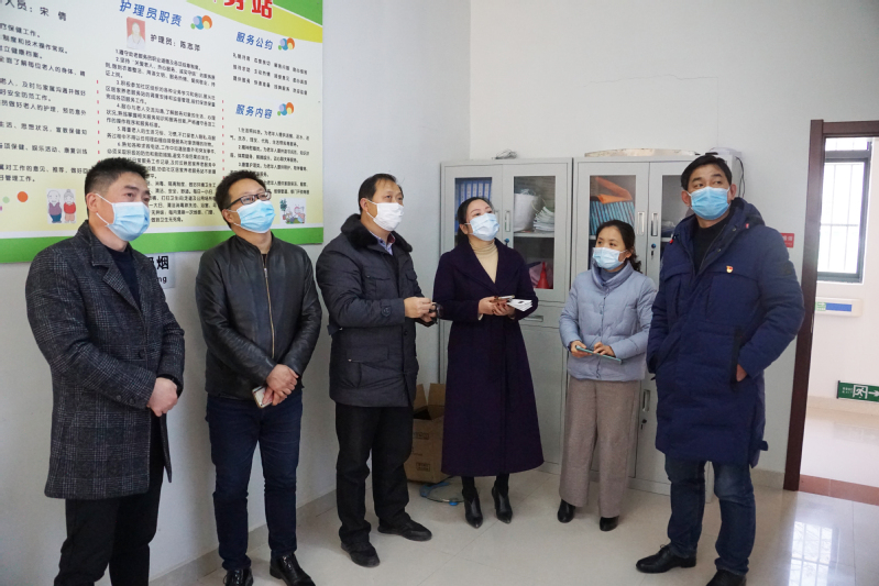 (圖為縣民政局領導指導示范型居家養老服務中心建設)