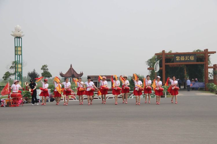 6、7兩個(gè)月間,每次表演,隊(duì)員們都提前半小時(shí)來(lái)到舞臺(tái)。走場(chǎng)、亮嗓,在鑼鼓和鐃鈸的引領(lǐng)下,腰鼓隊(duì)拉開(kāi)架勢(shì),時(shí)而大開(kāi)大合、力度飽滿,激烈的鼓點(diǎn)似綠葉下的精靈在跳躍歡呼;時(shí)而輕舒柔美、整齊劃一,輕盈的舞姿如花叢間的仙子在翩翩起舞;舞動(dòng)著“接天連葉無(wú)窮盡,映入荷花別樣紅”美麗畫(huà)卷,成為萬(wàn)畝荷花蕩景區(qū)一道亮麗的風(fēng)景。