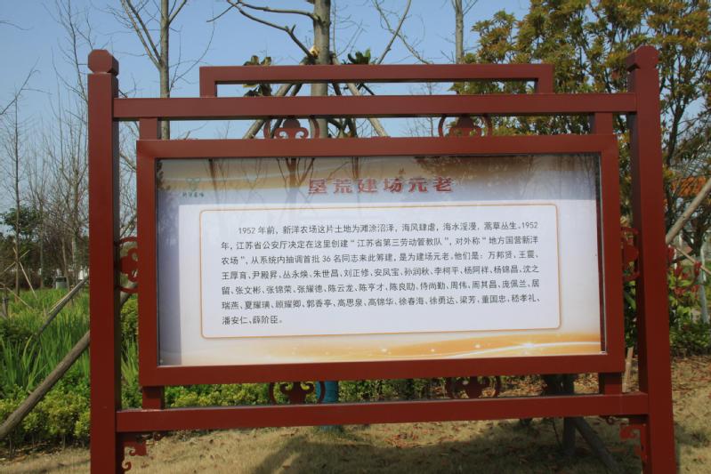 創業者們以“敢叫荒灘變良田”的大無畏氣魄,發揚艱苦奮斗的革命精神,住草棚、吃冷飯、喝咸水,用最簡單的勞動工具開溝挖渠、架橋鋪路、圍墾造田,用忠誠、智慧和勤勞,“為著未來的幸福而忘我的工作”,在黃海之濱譜寫一曲可歌可泣的“創業之歌”。近70年來,在老前輩“艱苦奮斗、勇于奉獻、開拓創新”的“拓荒牛精神”鼓舞下,一代又一代新洋人獻了青春獻終身,獻了終身獻兒孫,在黃海之濱奏響了一曲曲勝利凱歌,譜寫了一首首華麗詩篇,一個現代化的國有農場出現江蘇大地上。