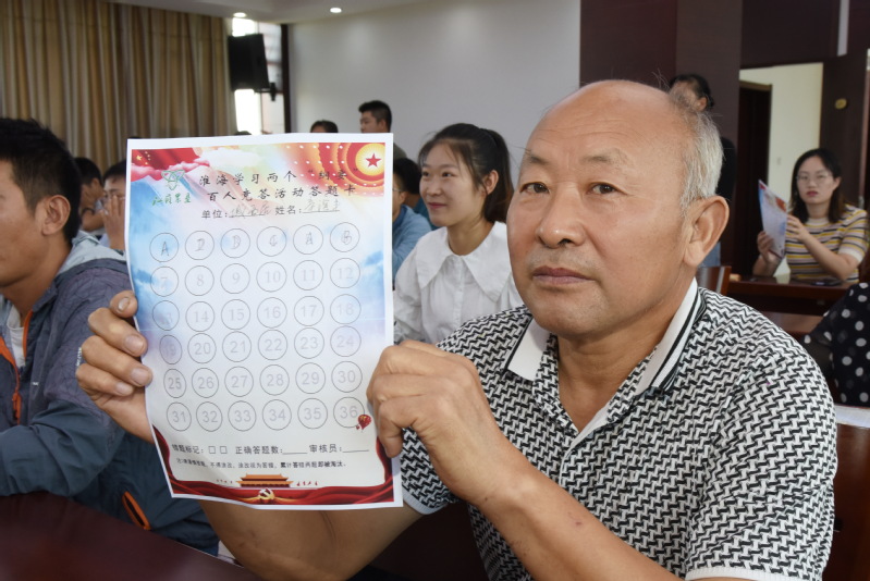 在現(xiàn)場參加兩個《綱要》學(xué)習(xí)考試的還有如辛濱豐、王成超、花茂忠、朱綿林等老人,雖然他們先后因為答錯了題而離開了座位,成為了后排觀看的觀眾,但我們從他們在言語中,對農(nóng)場舉辦兩個《綱要》的活動給予了高度評價和肯定。