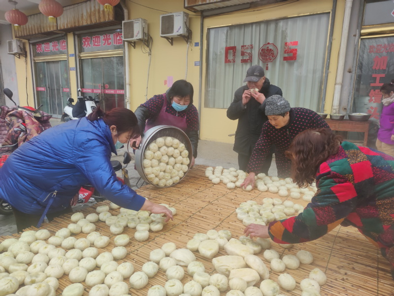 今年60歲的賈長梅是淮海農(nóng)場淮海路15號樓的居民,以前她和丈夫是濱海縣振東鄉(xiāng)人,后來到農(nóng)場以外包工的身份種田,隨著農(nóng)場對農(nóng)業(yè)生產(chǎn)的整合和股份制經(jīng)營,她的丈夫就替農(nóng)場管理農(nóng)田,來謀取打工管理的收入,加上平時愛好在十邊隙地種植,日子還過得較好。而賈長梅平時也經(jīng)常在外做些幫工的活,夫妻倆利用勤勞的雙手,日子過得也是苦中有甜。夫妻倆在這樣的背景下,最終他們在農(nóng)場小城鎮(zhèn)中買了樓房,還購買了門面房,以至于每年她就利用春節(jié)到來的時節(jié),通過手藝來為集聚到農(nóng)場小城鎮(zhèn)中發(fā)展的廣大職工居民提供春節(jié)前蒸饅頭包包子的服務(wù),此舉受到了因住上樓房或家中不便蒸饅頭的眾鄉(xiāng)鄰的歡迎。