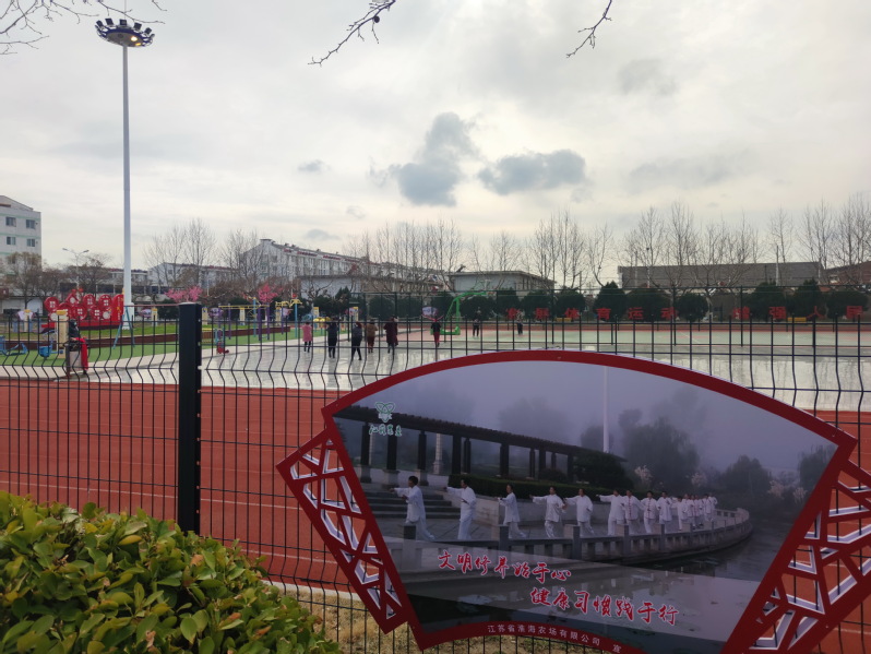 淮海遠離縣域小城鎮,有著自己獨立于縣城外的獨特優勢,農場在小城鎮的建設過程中,一直以來將全民健身活動的空間納入到農場黨委的議事日程。為此,農場在建場四十周年那年創建了文化廣場的基礎上,在2010年又建成了一萬平方米的職工休閑體育運動廣場,建成了淮海公園,并在職工居民活躍的處所,增設了適合體育運動的健身平臺,讓職工居民就近就能有廣場舞、健身操的運動場地,有適合籃球、羽毛球、乒乓球及健身器材的運動場所,讓不同區域的人們可以在因地制宜、靈活多樣地開展全民健身活動。