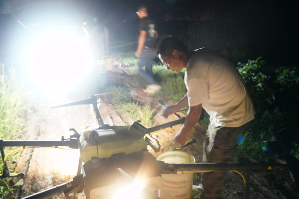 7月31日晚上22:20分,在邱上郢生產區四隊田頭,隊長楊明正和魏佳、金仁超一起在田間進行水稻病蟲防治,他們3人全部是在疫情防控值守工作完成后,利用休息時間進行田間管理,其中一人是接防控點零點的班,雖然值守防控點已經很辛苦,晚上進行病蟲防治田間蚊蟲叮咬的厲害,但他們沒有一句沒有怨言,隊長楊明說,晚上進行病蟲防治不耽誤白天的工作,關鍵時刻,他們工作不分晝夜,勇于奉獻,愛崗敬業,在為三河疫情防控工作奉獻自我的同時,認真做好本職工作,他們值得我們學習。