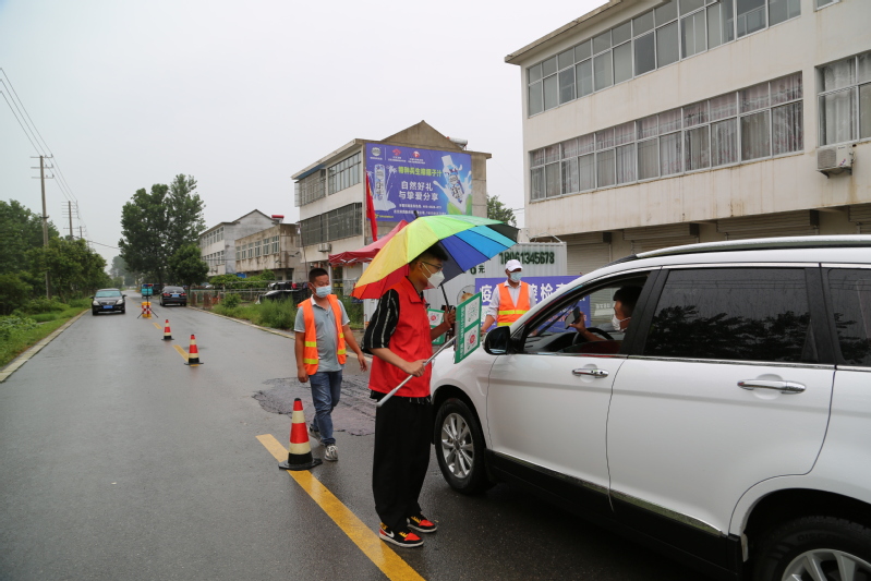 在包莊卡口點,執勤人員全員在崗,三名00后志愿者堅持在雨中,他們按照檢查要求,認真落實信息檢查登記。因為車流不斷,其中一位老同志只能一直站在雨地里等候,堅持排查不放松。據了解,該卡口每天有許多去開發區上班人員,早中晚車流量人流量巨大,日均登記排查車輛達200輛以上。