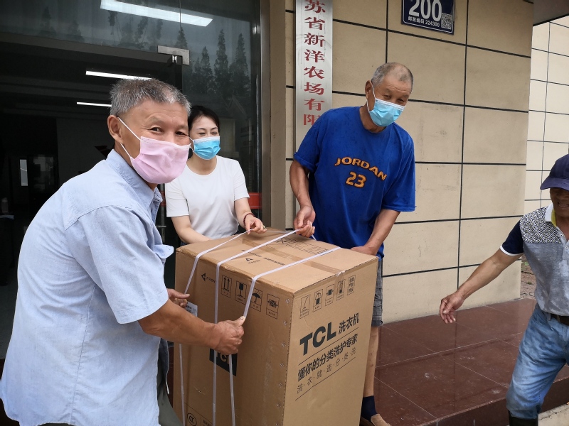 一家家、一戶戶陸續來到社區簽字領取家電。殘疾人陳雪芬父親接過微波爐、電飯煲感動地說:“感謝農場、感謝社區幫我們爭取的免費家電陳自力從小智力重殘,母親雙腿行動不便,家庭困難,陳自力的爺爺雙手扶著洗衣機感動地說:“現在黨的政策好,農場領導也好,我們全家感謝社區、感謝你們”