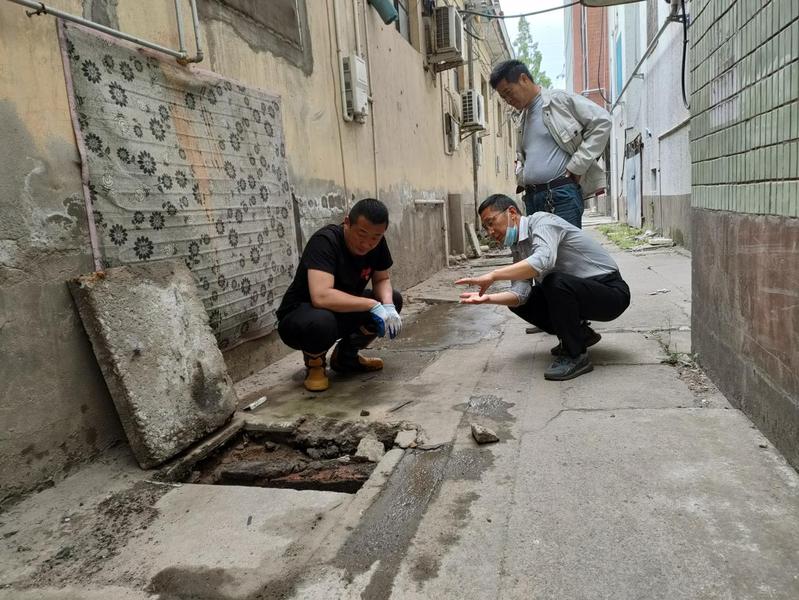 污水散發出的臭氣更是彌漫到整個小區,嚴重影響了小區居住環境,居民們苦不堪言?!耙郧拔覀兙拖矚g晚飯后在樓下散散步、聊聊天。自從下水道堵了以后啊,別說出門了,我家窗子都不敢開?!毙^居民李奶奶回憶起幾個月來的小區環境,直皺眉頭。蔡文亮看在眼里,急在心頭,于是立即聯系社區工作人員帶頭為民疏通排污管道。
