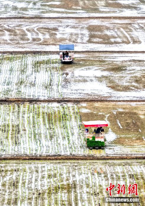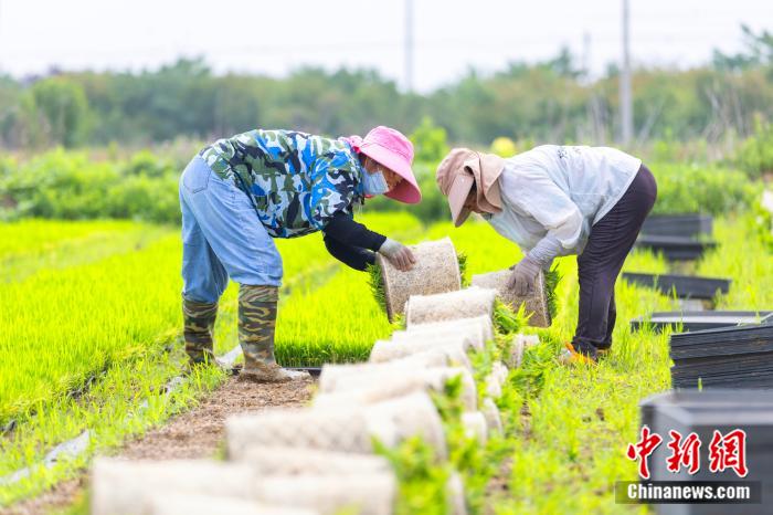 6月11日,江蘇省盱眙縣三河農(nóng)場,農(nóng)民正在進(jìn)行機(jī)插秧作業(yè)。據(jù)了解,三河農(nóng)場2025年水稻種植面積4.1萬畝,機(jī)插秧比例達(dá)到96-97%,機(jī)插秧不誤農(nóng)時(shí),比往年半人工插秧普遍縮短3~5天時(shí)間。 圖/CNSphoto 許昌銀 攝