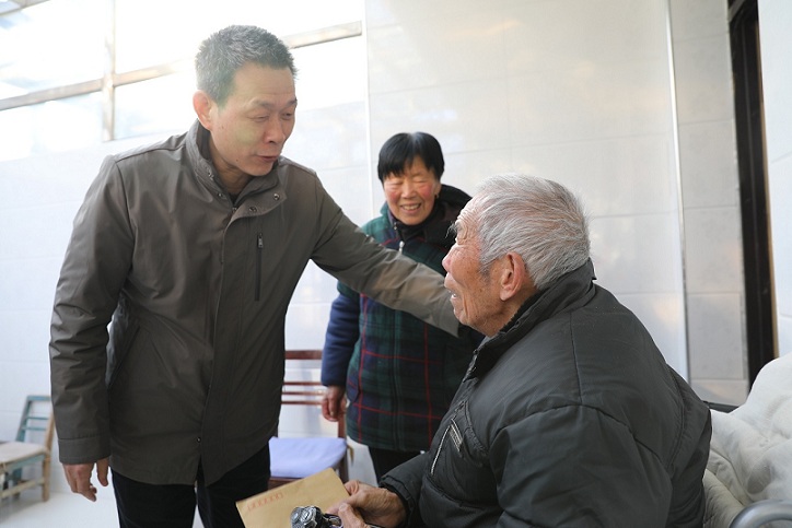 1月27日上午,集團(tuán)公司總經(jīng)理胡兆輝一行到海安走訪慰問(wèn)困難職工。南通農(nóng)墾事業(yè)管理辦公室主任許嘉寧、海安農(nóng)場(chǎng)公司黨委書記崔靜波及班子其他成員陪同慰問(wèn)。    胡兆輝一行,首先來(lái)到患病老人楊思俊家中。
