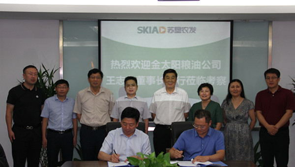 8月22日,金太陽糧油股份有限公司董事長王志榮一行到訪蘇墾農發股份公司總部,集團公司總經理、蘇墾農發股份公司董事長胡兆輝,集團公司副總經理仲小兵,集團公司黨委委員、蘇墾農發股份公司總裁蘇志富與王志