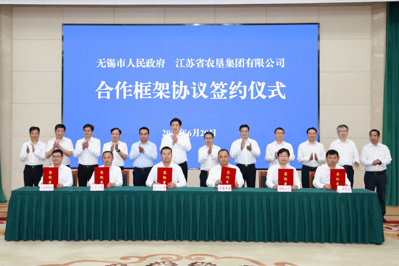 6月20日,集團公司與無錫市政府簽署合作框架協(xié)議。無錫市委副書記、市長趙建軍會見集團公司黨委書記、董事長吳本輝一行,并共同見證合作簽約。無錫市副市長馬良,市政府秘書長陳壽彬,集團公司黨委委員、副總經(jīng)理王立新參加活動。趙建軍對省農(nóng)墾集團長期以來給予無錫發(fā)展的關(guān)心支持表示感謝。他說,當(dāng)前無錫正深入學(xué)習(xí)貫徹習(xí)近平總書記對江蘇工作重要講話重要指示精神,認真貫徹落實習(xí)近平總書記關(guān)于“三農(nóng)”工作的重要論述,大力實施鄉(xiāng)村振興戰(zhàn)略,全面推進耕地保護“三提兩嚴”行動,加快農(nóng)業(yè)現(xiàn)代化建設(shè)步伐。希望雙方以此次簽約為契機,充分發(fā)揮省農(nóng)墾集團在發(fā)展現(xiàn)代農(nóng)業(yè)方面所具有的規(guī)模、資源、技術(shù)、裝備和管理優(yōu)勢,圍繞土地流轉(zhuǎn)、規(guī)模種植和一體化全農(nóng)服務(wù)等領(lǐng)域加強產(chǎn)學(xué)研合作,攜手培育農(nóng)業(yè)新質(zhì)生產(chǎn)力,努力為保障國家糧食安全、推進鄉(xiāng)村全面振興貢獻更大力量。同時,期待雙方不斷拓展在醫(yī)藥健康、生態(tài)環(huán)保、房地產(chǎn)等方面的合作空間,在更寬領(lǐng)域、更深層次實現(xiàn)互利共贏。吳本輝在簡要介紹集團生產(chǎn)經(jīng)營情況后表示,無錫農(nóng)業(yè)強、農(nóng)村美、農(nóng)民富,“魚米之鄉(xiāng)”底蘊深厚、盛名遠揚。他說,近年來省農(nóng)墾集團深入學(xué)習(xí)貫徹習(xí)近平總書記關(guān)于農(nóng)墾工作重要論述,認真落實省