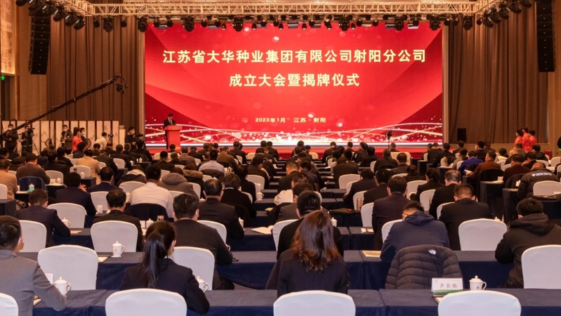 1月12日,江蘇省大華種業集團有限公司射陽分公司成立大會暨揭牌儀式在江蘇射陽成功舉行。集團公司黨委副書記、總經理胡兆輝,中共射陽縣委書記吳岡玉,集團公司黨委委員、副總經理王立新,及揚州市農業科學院、江蘇省種子管理站、中共射陽縣委、人大、蘇墾農發、鹽城地區農場公司等領導、蘇皖兩地種業企業代表等200多人出席大會。會上,胡兆輝指出,江蘇農墾與鹽城射陽有著跨越70年的世紀情緣,江蘇農墾的事業從鹽城射陽發端。大華種業舉行射陽分公司成立大會暨揭牌儀式,這是江蘇農墾人與娘家人的一次緊密合作,熱切期望得到地方黨政領導、合作伙伴的支持與厚愛。胡兆輝強調,種子是農業的“芯片”,是保障糧食安全的關鍵,農墾強核,種業為先。大華種業站在全國三強新賽道起點上,聚合配置資源、打造區域優勢產業集群勢在必行,這是大華的戰略任務,也是農墾集團的重點任務。射陽是全國重要的糧食主產縣,擁有廣闊的種業發展腹地,是農墾種業資源布局密集區,資源整合首定射陽是不二之選,大華合并原新洋、臨海、淮海三家分公司成立射陽分公司,可謂正當其時。江蘇農墾、蘇墾農發和相關農場公司、農發分公司高度重視、全力支持大華種業射陽分公司發展。胡兆輝要求,