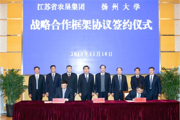 11月18日上午,江蘇農墾與揚州大學戰略合作框架協議簽約儀式在揚大荷花池校區舉行。集團公司黨委書記、董事長魏紅軍、揚州大學黨委書記姚冠新出席儀式并講話,揚州大學校長焦新安主持簽約。集團公司副總經理