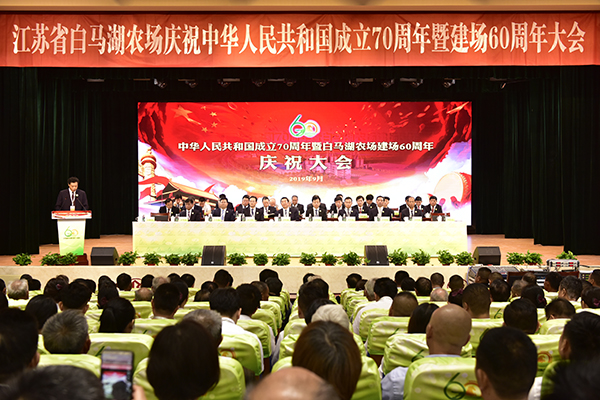 9月23日,在節(jié)日般的喜慶氛圍中,白馬湖農(nóng)場(chǎng)有限公司干部職工代表和特邀嘉賓共450人歡聚一堂召開慶祝大會(huì),共同慶祝中華人民共和國(guó)成立70周年暨白
