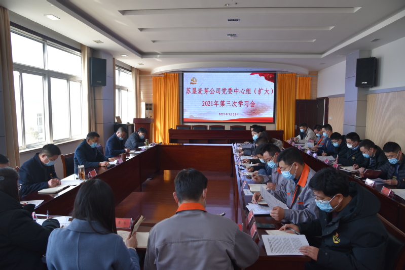 3月22日下午,蘇墾麥芽公司召開2021年第三次黨委中心組學習會,公司中心組全體成員參加會議,會議由黨委書記、董事長、總經理郭世平主持。