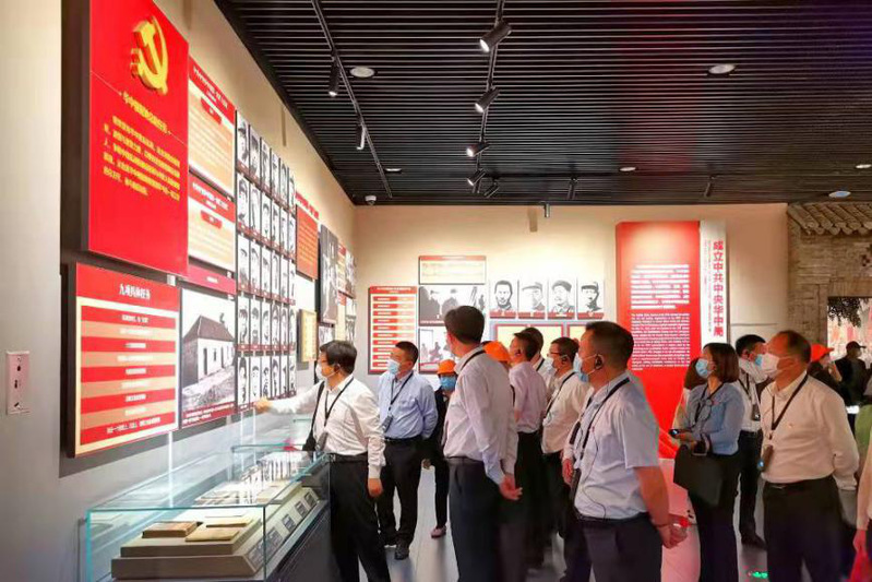 探尋場外紅色資源。公司黨委利用臨近的紅色資源開展實景學習。濱海縣正紅鎮學習“五卅運動”精神,中心組成員到鹽城新四軍紀念館學習“鐵軍精神”,黨員骨干赴貴州學習“遵義會議精神”,學教辦到陜西延安學習“南泥灣精神”;組織250多名黨員、管理人員赴南京參觀“百年征程 初心永恒”中國共產黨江蘇歷史展;開展“跟著習近平總書記在江蘇的足跡學黨史”活動,學習貫徹總書記視察江蘇重要講話指示精神。通過訪學紅色資源,緬懷革命先烈、追尋先輩足跡,學習中國共產黨人系列精神,推動黨史學習教育走深走實。挖掘場內紅色資源。利用臨海農場陳列館、臨海農場公園暨黨史、新中國史教育基地、愛國主義教育基地等紅色教育陣地,建紅色文化“現場”課堂,每周“紅色電影”放映活動,豐富學習教育。