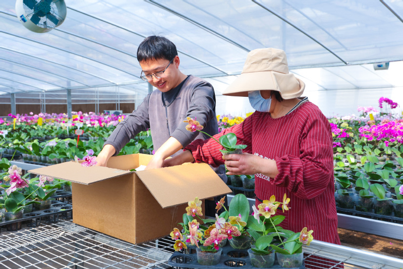 日前,云臺農(nóng)場蝴蝶蘭種植溫室內一片繁忙景象,工作人員正有條不紊地將1500株精心培育的蝴蝶蘭苗打包裝箱。