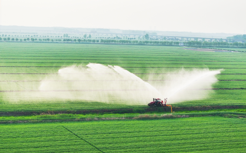 當前正值小麥拔節(jié)孕穗關鍵期,面對近期持續(xù)少雨天氣,蘇墾農(nóng)發(fā)東辛分公司搶抓農(nóng)時,組織農(nóng)業(yè)生產(chǎn)區(qū)積極做好抗旱保苗等工作。小麥田里,一臺臺拖拉機搭載著專業(yè)灌溉設備,結合苗情、墑情分片分區(qū)科學澆水,水流均勻地灑落在嫩綠的麥苗間,一道道弧形水幕精準覆蓋農(nóng)田。