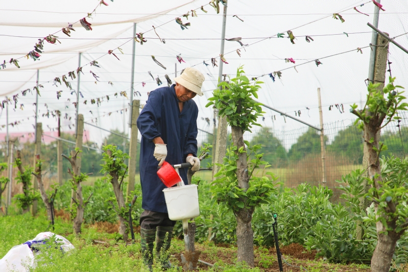 江心沙農(nóng)場果農(nóng)運用一體式施肥器進行穴施作業(yè),為新栽種梨樹提供充足養(yǎng)分,促進枝葉生長。據(jù)了解,該方式適合于春季和夏季,能確保肥料均勻分布,有利于根系吸收,減少養(yǎng)分流失。