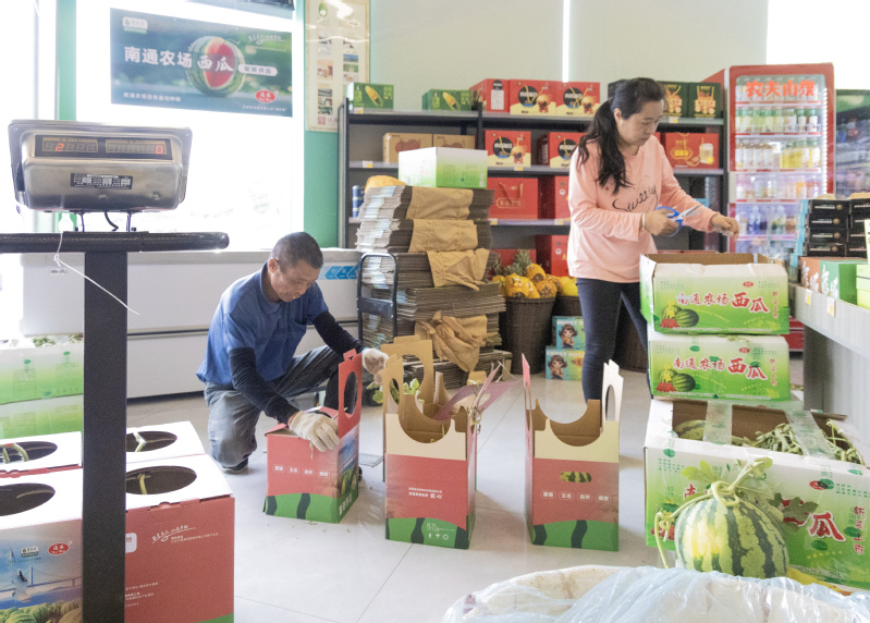 五一期間,正值南通農場西瓜搶“鮮”上市熱銷,南通公司“墾品會”銷售門店內,工作人員堅守崗位,爭分奪秒將西瓜打包裝車,為企業客戶、周邊居民提供優質產品和服務。半個多月來,門店日均銷售西瓜3000斤左右,引領節日消費新熱潮。