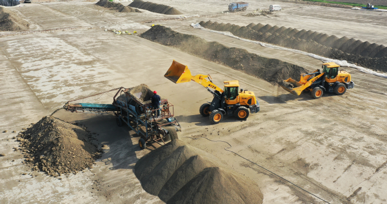 連日來,蘇墾農發崗埠分公司搶抓晴好天氣,人機并舉做好水稻育秧準備工作。圖為機械篩土現場,機械篩土每天可篩選營養土350噸以上,提高了作業效率,降低了人力成本。