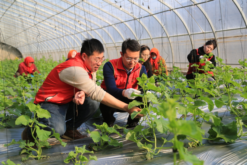 3月20日春分節氣當日,崗埠農場組織志愿者走進高效農業示范園18號大棚,與工作人員一起為甜瓜苗進行打杈、繞藤蔓等作業,為“甜蜜事業”貢獻一份力量。