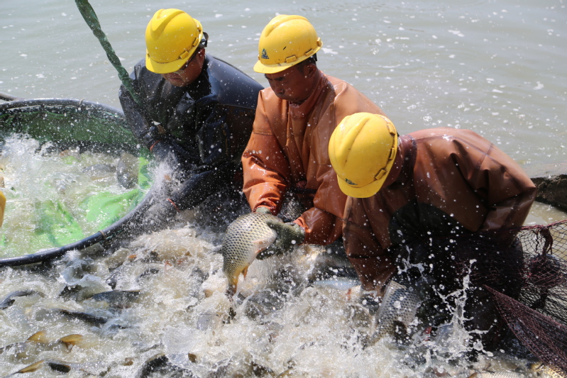 入夏以來,崗埠迎來水產(chǎn)品捕撈銷售的黃金季節(jié)。7月4日一大早,崗埠農(nóng)場公司北漁場的養(yǎng)殖塘口便響起了“起網(wǎng)”的號子聲,隨著工人們相互配合,一起發(fā)力將巨型漁網(wǎng)緩緩收攏,一條條活蹦亂跳的大魚出現(xiàn)在人們的視野中,平靜的水面上也頓時水花飛濺,大魚歡快地躍出水面,一片人歡魚躍的豐收景象?!?024年上半年,養(yǎng)殖中心緊跟市場行情,連續(xù)開展捕魚銷售作業(yè),爭取效益最大化。”在捕撈現(xiàn)場,中心負責(zé)人單懷亞一邊指揮分揀水產(chǎn)品,一邊介紹。養(yǎng)殖中心充分發(fā)揮“淮河牌”水產(chǎn)品品牌優(yōu)勢和無公害水產(chǎn)品養(yǎng)殖規(guī)模化、標(biāo)準化、高效化的優(yōu)勢,促進水產(chǎn)養(yǎng)殖健康發(fā)展。今年以來,水產(chǎn)公司加快調(diào)整養(yǎng)殖模式,優(yōu)化養(yǎng)殖結(jié)構(gòu),采取“輪捕輪放,按需銷售”管理模式,準確把握市場行情,確保全年都有鮮魚上市。“每年這個時候是水產(chǎn)銷售旺季,近期北漁場和南漁場將先后進行水產(chǎn)捕撈銷售。我們時刻關(guān)注市場動向,爭取銷售效益最大化。”單懷亞表示,養(yǎng)殖中心積極對接市場,努力提高水產(chǎn)銷售效益。據(jù)悉,夏季捕撈的魚獲以鯉魚、花鰱、白鰱為主,最重的鰱魚有15斤以上。僅7月4日當(dāng)天,捕撈銷售水產(chǎn)品28000斤,銷售額14萬元。下一步,養(yǎng)殖中心將繼續(xù)利用好水資源優(yōu)勢,結(jié)合產(chǎn)業(yè)發(fā)