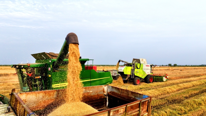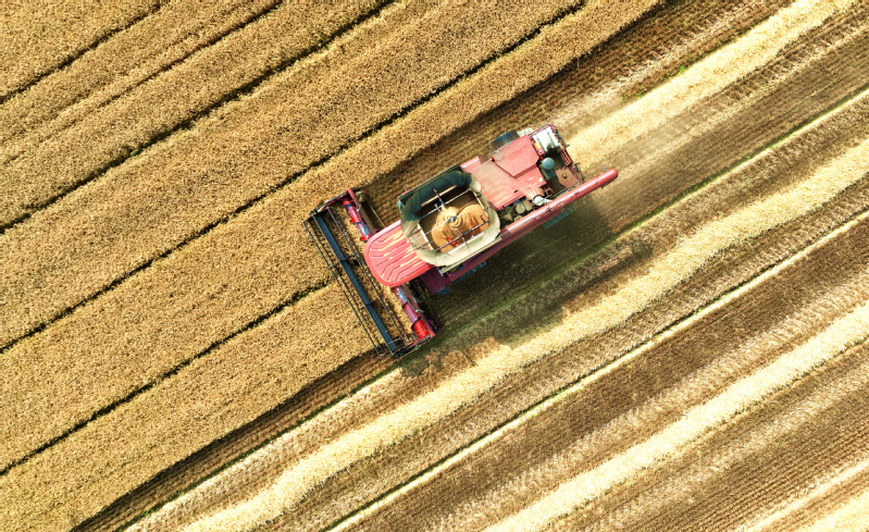 風(fēng)吹麥浪,滿地金黃。蘇墾農(nóng)發(fā)東壩頭分公司搶抓晴好天氣加緊搶收,數(shù)臺(tái)收割機(jī)馬力全開(kāi)在田間來(lái)回穿梭,金黃的麥浪在轟鳴聲中起伏。