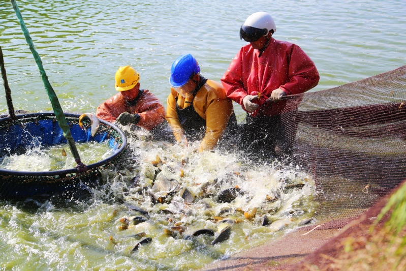 走進(jìn)崗埠農(nóng)場(chǎng)北漁場(chǎng),大型吊車(chē)配合捕魚(yú)工人們正在進(jìn)行拉網(wǎng)作業(yè),收獲的鯉魚(yú)經(jīng)過(guò)分揀銷往湖北等地。連日來(lái),水產(chǎn)市場(chǎng)行情走俏,崗埠農(nóng)場(chǎng)加緊捕撈各類水產(chǎn)品,切實(shí)滿足市場(chǎng)供應(yīng)。據(jù)悉,當(dāng)日共捕撈鯉魚(yú)3萬(wàn)余斤,銷售額近20萬(wàn)元。